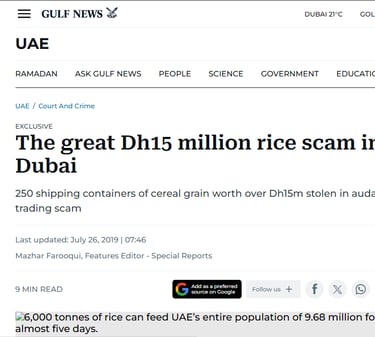 Once payment was secured, neither the rice nor the fruit was delivered, and the company behind the deal was discovered to be nonexistent. This case is now under active investigation by UAE authorities and has highlighted how shell companies are used as tools for high-value trade fraud.