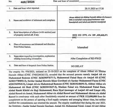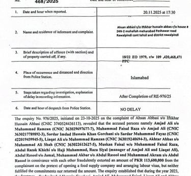 Most recently, Ahsan Abbasi fell victim to Amjad Ali and Faisal Raza, who lured him with a fake food supply and visa scheme, took his money, and disappeared exposing their repeated pattern of calculated fraud.
